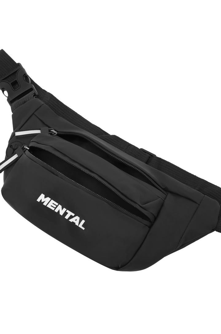 Travel Light with Mental essential bum bag, crafted from durable, water-resistant fabric. This sleek bum bag features adjustable straps, customizable fit and easy access pockets to keep all your nic nacs secure.